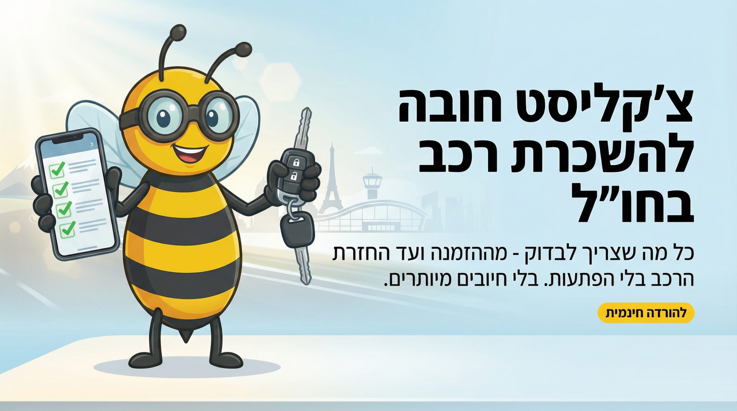 השכרת רכב בחו"ל היא אחד השלבים הקריטיים בתכנון הטיול. למרות שרובנו משווים מחירים ומזמינים מראש, רבים נתקלים בחיובים מפתיעים על שריטות שלא ביצעו, ביטוחים יקרים שנכפו עליהם בדלפק, או קנסות על דלק. כדי לעזור לכם לעבור את התהליך בראש שקט, ריכזנו את צ'קליסט החובה של CarBee.