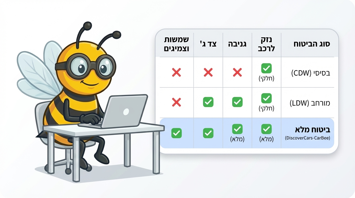 היתרון ב-CarBee: אתם מקבלים את הכיסוי הזה במחיר נמוך משמעותית ממה שיציעו לכם בדלפק בחו"ל.