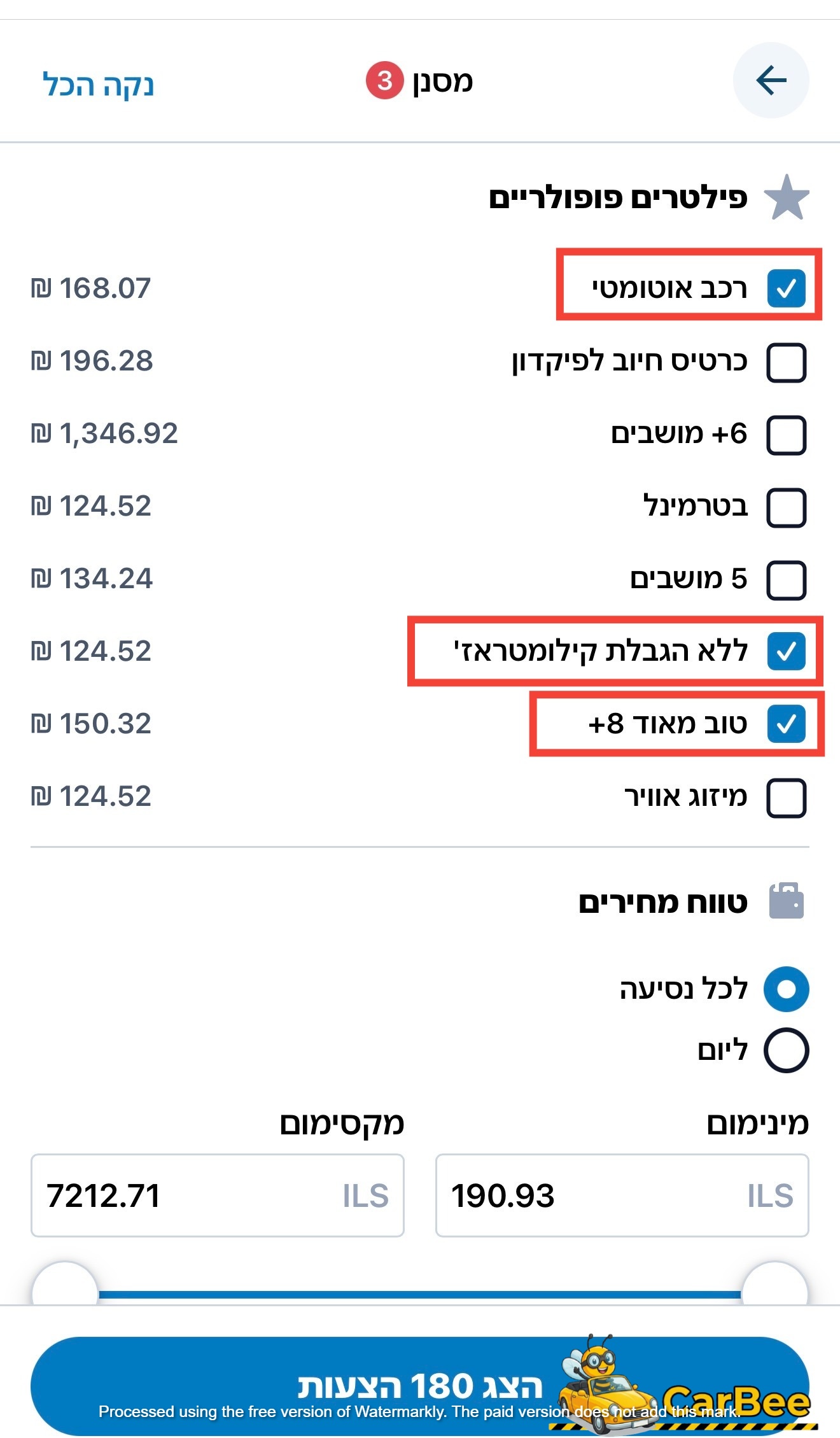 רכב אוטומטי – מציג רק רכבים עם גיר אוטומטי (אפשר לבטל אם רוצים גם ידני).