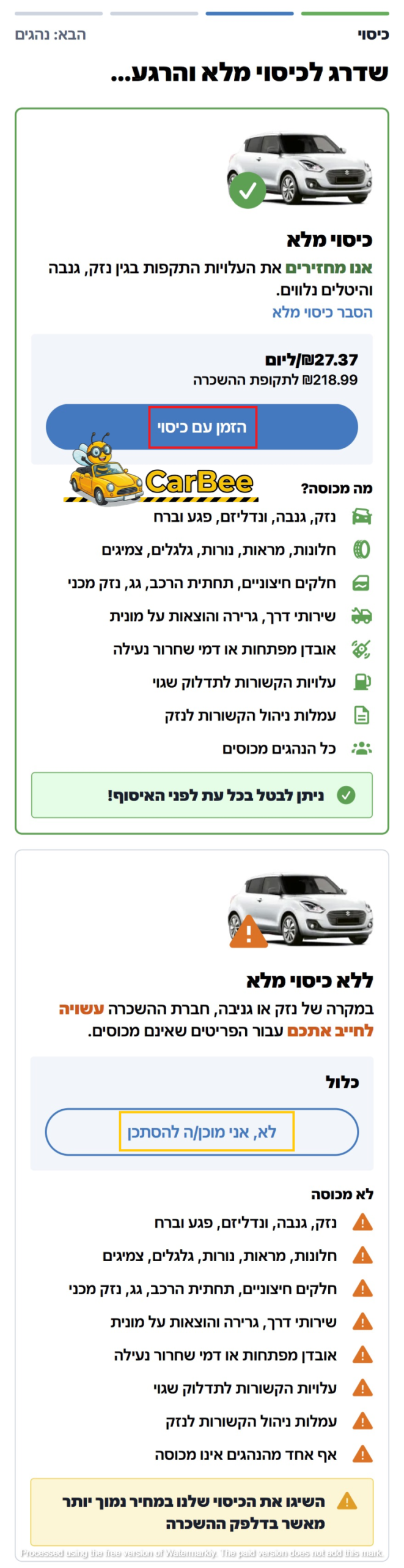 באדום: בחירת כיסוי מלא להשכרת הרכב